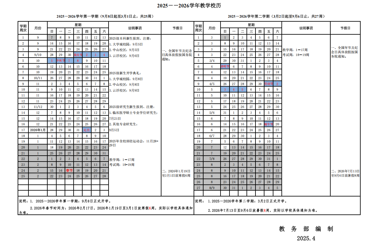 2025——2026学年教学校历