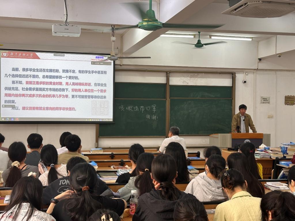 最后,何新荣对2024届全体毕业生寄语祝福,鼓励同学们端正心态,迎接挑战,开启属于每一个同学自己的精彩人生。会议后,同学们纷纷表示,将认真思考、调整心态,积极规划就业目标,做一个有责任担当的合格毕业生。