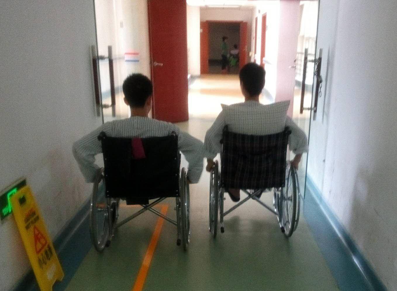 一位来自江西,一位来自肇庆,原本生活上毫无交集的两个人因为错失健康住进了珠江医院,后来才发现他们之间有那么多的共通点:同一年同一个月出生,住同一个科室同一个病房,入院时买了同样的轮椅,有些相同型号的手机,看相同类型的小说……这就是缘分。