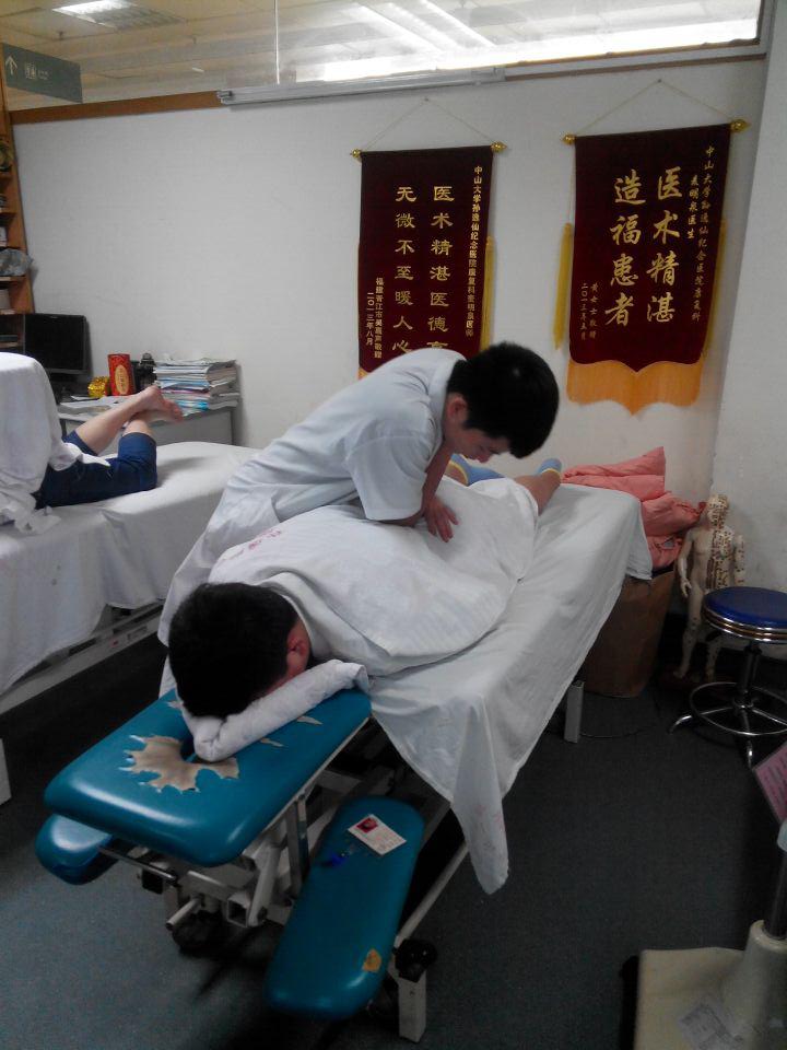 广东省第二中医院8月通讯稿 八月份开始转战门诊,省二中医的在康复方面比较有特色的就是脊柱门诊及针灸门诊,其中脊柱门诊分为两个方向,一个是以脚踩形式的推拿门诊,因为还未去学习过,就不一一说明。另有一个以龙式手法为主的脊柱门诊倾向颈肩腰腿痛的手法治疗。在脊柱门诊除了要会手法还得熟悉各类仪器设备的使用方法及操作,因为整脊方面手法虽为重要部分,但要辅以其他疗法加以巩固以防椎体失稳。小针刀、浮针、自血疗法、放血疗法都普遍得到应用。