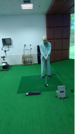 图为实习医院的大型VR室,该室可以通过模拟高尔夫球场与打猎场,让患者锻炼肌力与协调,平衡与耐力等能力,在游戏中使身体技能得到强化。