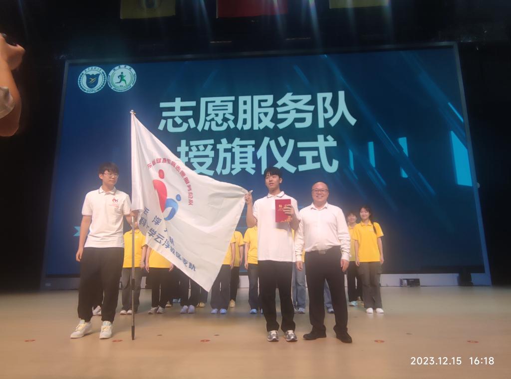 在本次大赛上,在云浮市卫生健康局的指导下,广东省健康教育志愿服务总队-云浮分队-广东药科大学云浮校区支队正式成立,吴仁皓副局长为志愿服务支队授旗并为队长颁发聘书,志愿服务队队员代表进行宣誓。