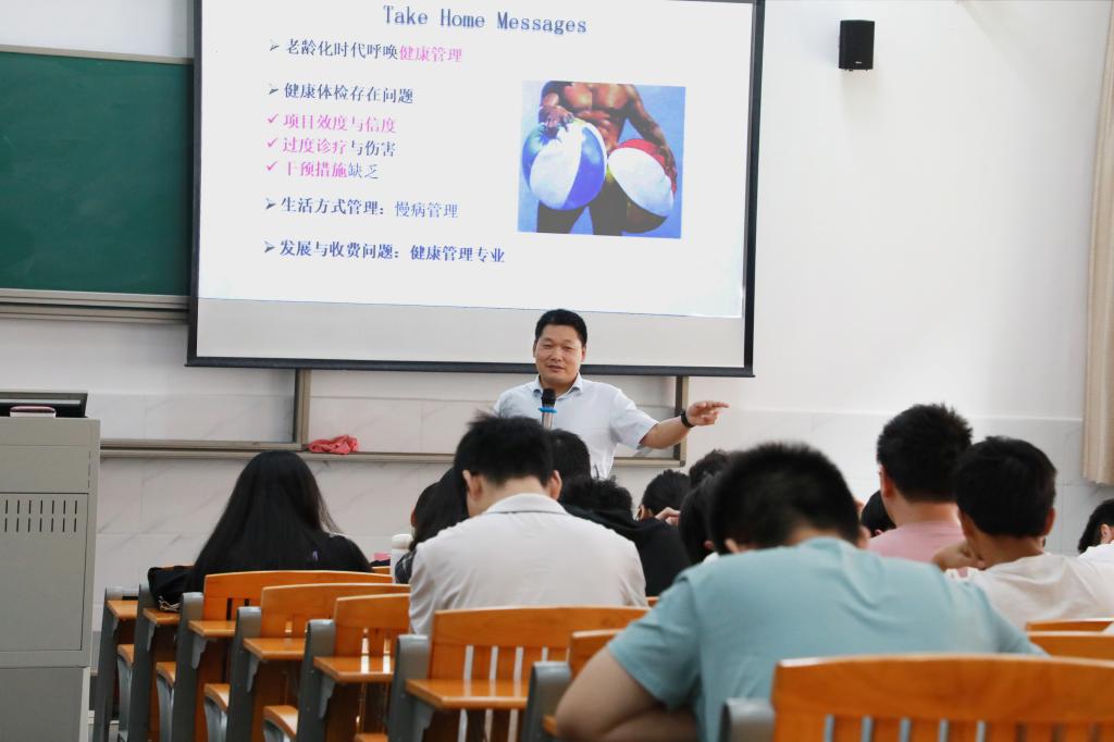 张亚东教授应邀就“健康管理思考与初步探索”进行了专题讲座。张亚东教授结合社会老龄化现状与健康体检存在的问题,介绍了中山大学附一院健康管理中心的的健康管理模式和发展规划。他指出,要强化健康管理的学科内涵,加强专科基石建设,开展生活方式门诊医疗,这个过程需要健康管理专业人才的全程参与。参加专题讲座的学院2021-2024级健康服务管理专业学生表示,通过聆听专题讲座,对自己所学专业有了更全面更深刻的理解,将对自己以后的专业学习和职业规划产生积极的指导作用。健康管理系主任主持了专题讲座。