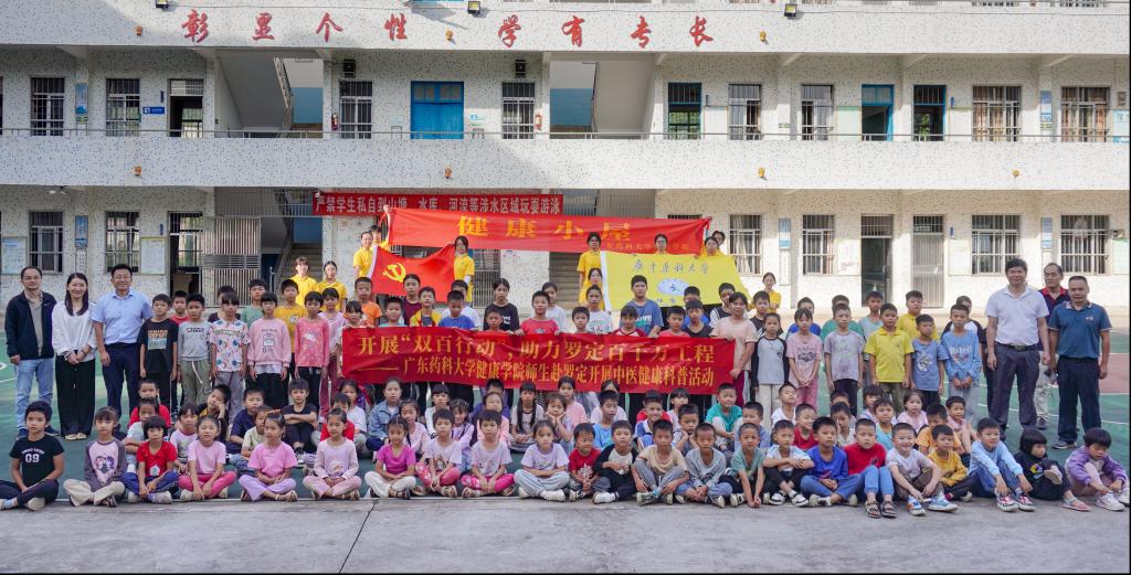 10月23日,我校健康学院师生积极响应广东省委、省政府“百千万工程”和“双百行动”的号召,积极开展党建领航工程,深入罗定市龙湾镇中心小学两所分教点开展“双百行动”中医健康科普活动。