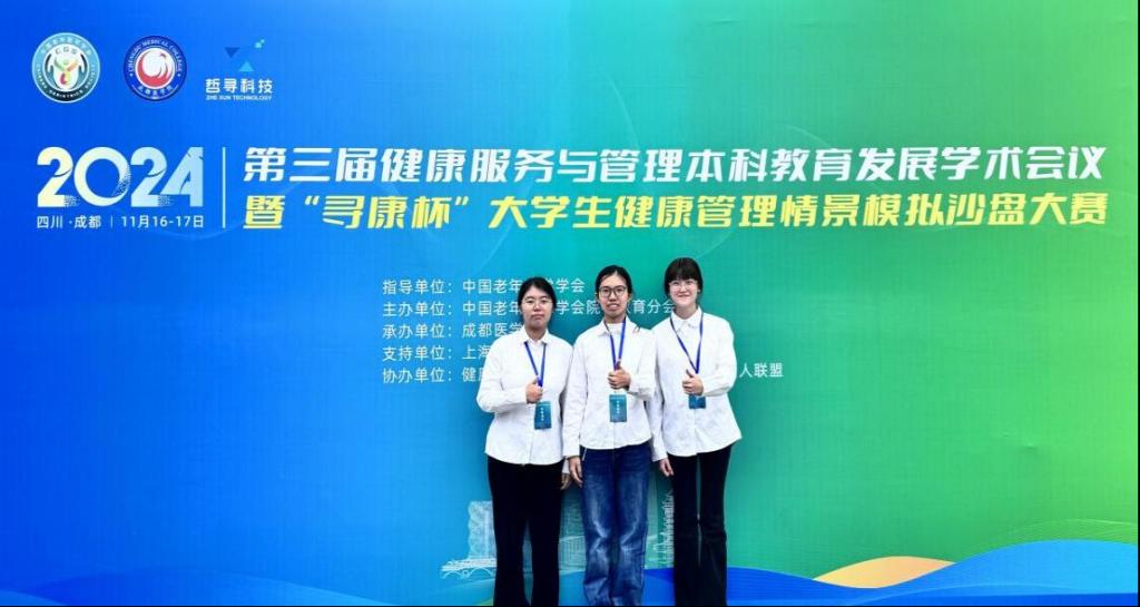 11月16日至17日,第三届健康服务与管理本科教育发展学术会议暨"寻康杯"大学生健康管理情景模拟沙盘大赛在成都医学院举行。健康学院健康服务与管理专业王绮兰、刘欣悦、林小滟三位同学组成“扶药直上”队,在王晓玉老师的指导下参加了比赛。经过与中国药科大学、北京中医药大学、东北大学、南京中医药大学、新疆医科大学等来自全国85所高校86支队伍的激烈角逐,我校代表队最终斩获特等奖!同时举行的还有第三届全国本科院校健康服务与管理专业优秀毕业生论文评比,健康服务与管理专业选送的毕业论文获得“三等奖”一项。