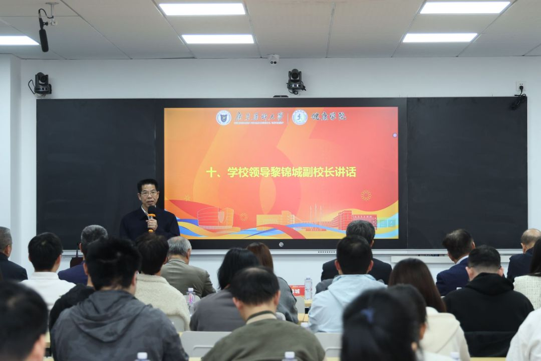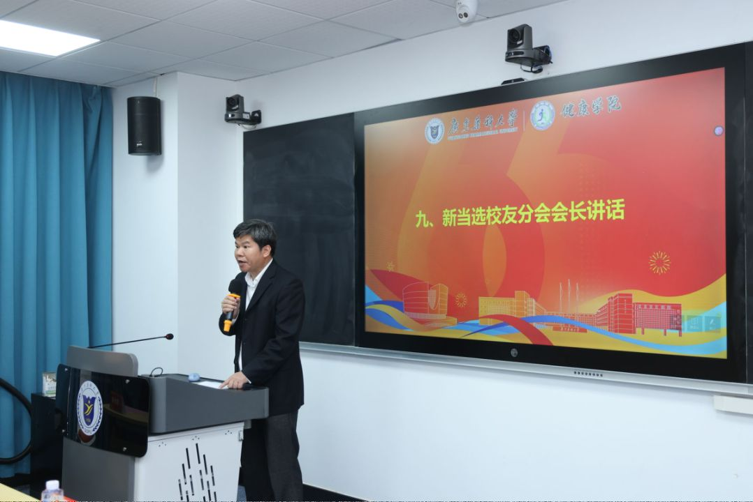 黎锦城代表学校向长期以来关心支持学校发展的广大校友表示诚挚感谢,对健康学院分会的成立表示热烈祝贺!并对校友会健康学院分会今后的工作提出了三点希望:一是依法规范管理,完善运行机制;二是拓展交流平台,携手共同进步;三是凝聚校友力量、推动学院发展。