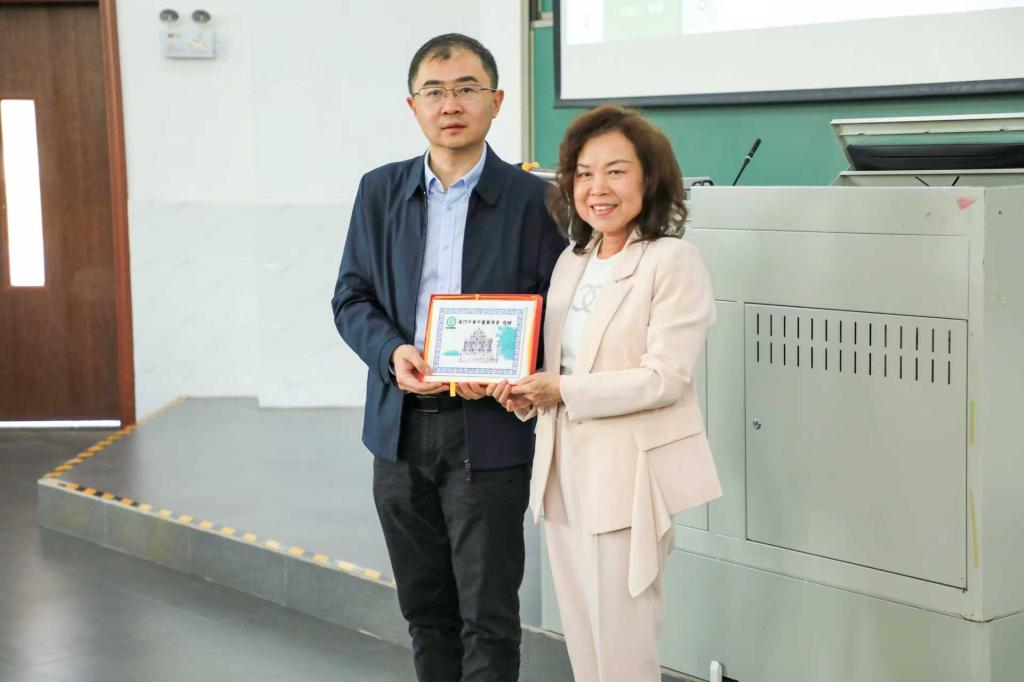 活动尾声,澳门中华中医药学会将纪念品赠予学院,澳门中华中医药学会会长孙洁与中医学院院长宋雨鸿合影留念。定格一瞬,两位中医药人绽开笑颜,这份礼物也随之化为学术传承的纽带,更成为粤港澳中医药人携手共进的珍贵见证。